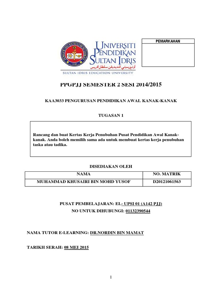 Assigment Kaa 3033 Pengurusan Pusat Pendidikan Awal Kanak Kanak Pdf